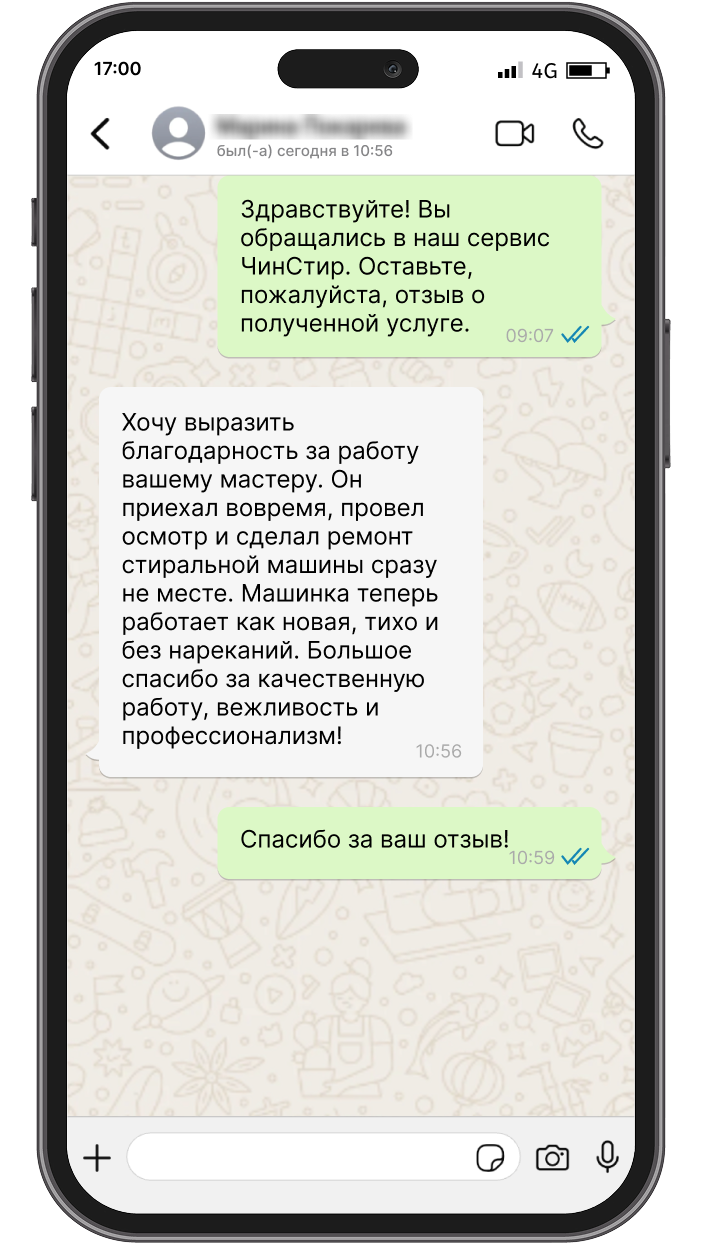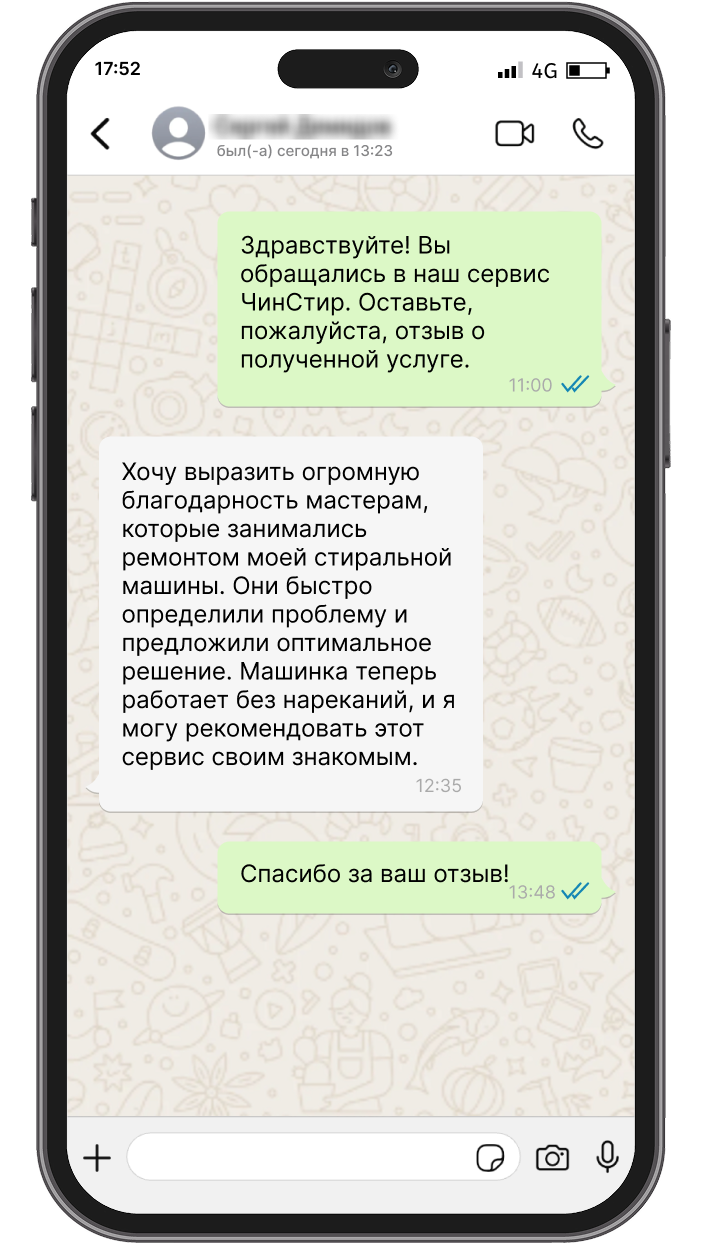 Мастерская ЧинСтир использует только оригинальные запчасти и комплектующие, что гарантирует продолжительный срок службы стиральной машины после проведенного ремонта. Мы дорожим своей репутацией и стремимся к долгосрочному сотрудничеству с каждым клиентом. Все наши мастера проходят регулярное обучение и повышение квалификации, чтобы быть в курсе последних технологий и методов ремонта стиральных машин.